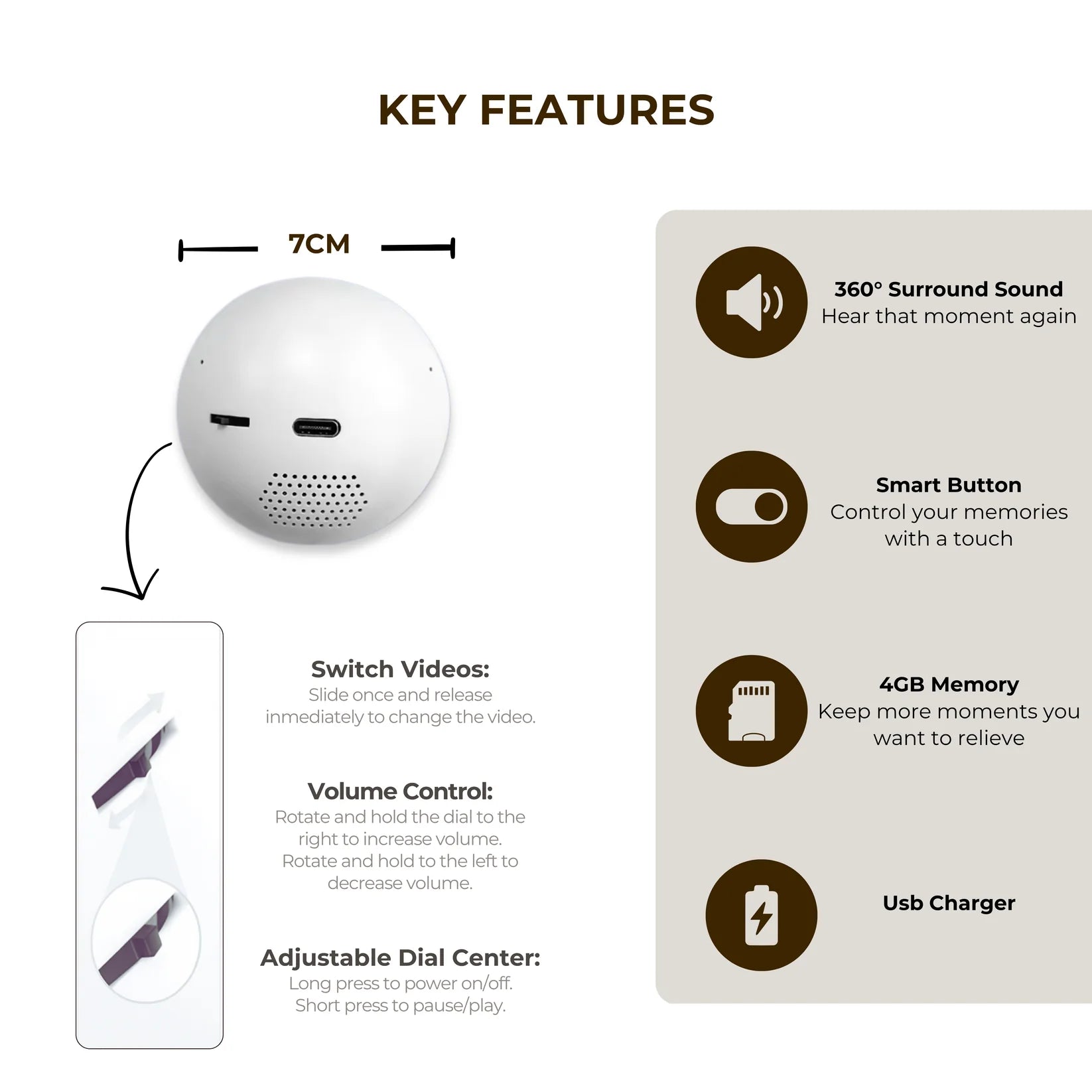 VideoSphere es una esfera de cristal con pantalla integrada que te permite almacenar y revivir tus recuerdos más importantes en fotos y videos. Su diseño elegante y minimalista convierte cualquier momento en una experiencia inolvidable.